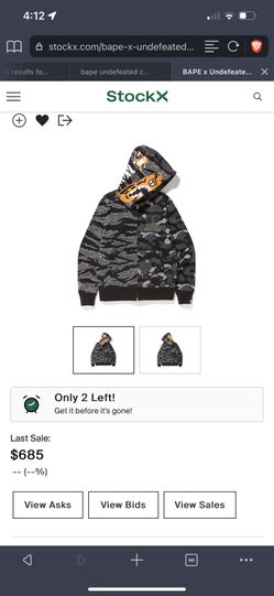 Bape x Undefeated Tiger Shark Half full zip hoodie$300Riverside, CA