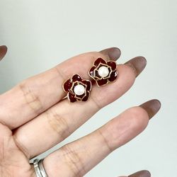 Red Flower Freshwater Pearl Earrings $10Bellaire, TX