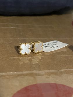18K Solid Gold Clover Earrings 10mm White Mother of Pearl β HK Setting$900Seattle, WA