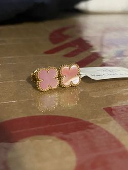 18K Solid Yellow Gold Clover Earrings 10mm Pink Mother of Pearl β HK Setting Press Lock$900Kent, WA