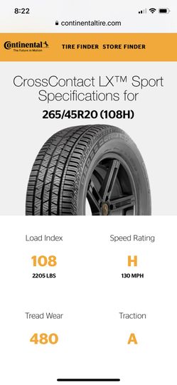 (1) Continental CrossContact LX Sport 265/45R20 (108H)$75Scottsdale, AZ