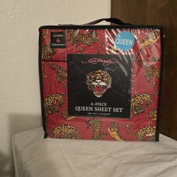 ED HARDY Queen Sheets 6pc HTF Red $65Mesa, AZ