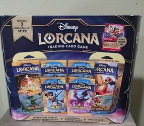 Disney Lorcana Trading Card Game 2 Ready To Play Decks With 1 Booster Pack Each. Plus 4 Additional Booster Packs And 1 Mickey Mouse Promo Card$25Hacienda Heights, CA