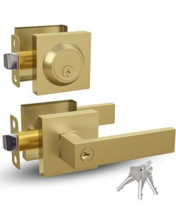 Mega Handles ROBELL Entrance Combo, Entry Lever Door Handle & Single Cylinder Deadbolt Lock & Key Combo Pack, Heavy Duty Square Locking Door Levers Se$50Hacienda Heights, CA