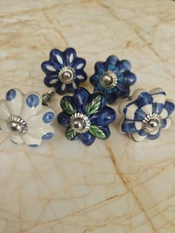 5, assorted, hand-painted ceramic floral cabinet knobs. $10Las Vegas, NV