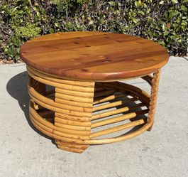 Vintage Stacked Rattan Round Coffee Table, 1940s, Tiki Style, Refinished! $275Del Mar, CA