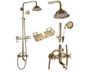 gotonovo Exposed Bathroom Shower System Classic Shower Kit 8 Inch Luxurious Rainfall Shower Head Handheld Spray Tub Filler Brass Pipe 3-Function Wall $80Ontario, CA