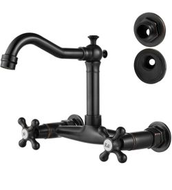 Airuida Wall Mounted 8 Inch Center Kitchen Sink Faucet Commercial Wall Mount Kitchen Tap Double Cross Handles 360 Rotatable Spout for Utility Laundry $75Ontario, CA