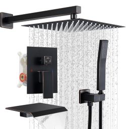 12in Rain Shower Faucet Set Wall Mounted Rainfall with Tub Spout Shower Head System Rough-in Valve Body and Trim Included Oil Rubbed Bronze$110Ontario, CA