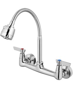 Airuida Chrome Polish Wall Mount Kitchen Sink Faucet 8 Inch Center Unility Faucet Wall Mounted Double Lever Handles Commercial Faucet with 360 Degree $50Ontario, CA