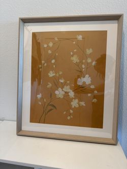Elegant Framed Floral Wall Art - Mustard/Ochre Background with Delicate White Flowers$40Las Vegas, NV