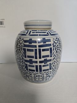 Vintage 1960s Chinese Blue And White Porcelain Double Happiness Ginger Jar Vase$40Miami, FL