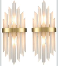 HOLKIRT Modern Gold Wall Sconces Set of Two Crystal Wall Sconce 2-Light Wall Light Fixtures for Living Room Bedside Hallway Stairway Kitchen $75Brea, CA