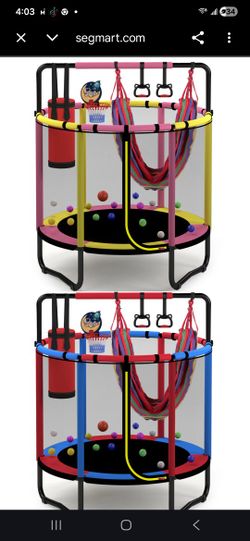 Mini Round Trampoline for Kids with Basketball Hoop, SEGMART 55'' Indoor Outdoor Toddler Trampoline with Enclosure Net, Swing, Sandbag, Ring, Ocean Ba$125Pasadena, CA
