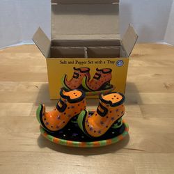 Halloween Witches Ceramic 4.5" Multi Color Salt & Pepper Shakers w/tray New Inbox L8$12West Cornwall, CT