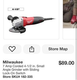 Milwaukee 7 Amp Corded 4-1/2 in. Small Angle Grinder with Sliding Lock-On Switch Store SKU# 182-335$60Everett, WA