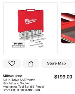 Milwaukee 3/8 in. Drive SAE/Metric Ratchet and Socket Mechanics Tool Set (56-Piece) Store SKU# 1003-930-963$150Everett, WA