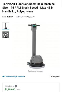 TENNANT Floor Scrubber: 20 in Machine Size, 175 RPM Brush Speed - Max, 48 in Handle Lg, Polyethylene$1,200Cty Of Cmmrce, CA