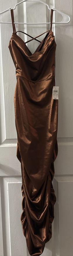 Windsor Satin Cowl Neck Ruched Midi Dress Bronze Brown L$20Henderson, NV