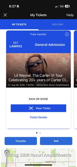 2 Lil Wayne tickets for this Friday, Aug 29th$50Chandler, AZ