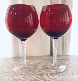 Vintage Balloon Wine Glasses Air Twist Stem Red Bowl Hand Blown Set of 2$35San Antonio, TX