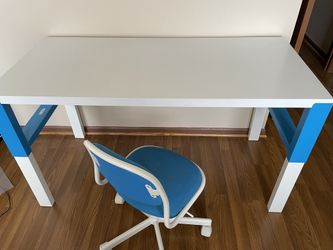 Blue & White desktop set with moveable chair, expandable height for table and chair, like new boys desk set see photos for measurement great condition$100Naperville, IL