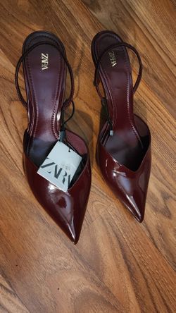 Patent-effect slingback shoes. V-vamp.$60Riverside, CA