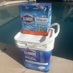 Bundle Deal Save 50% off Store 25 Pound Clorox Chlorine Tablets Xtra BLUE PLUS 6 Pack Clorox Xtra BLUE 6–1 Clarifier Pool Spa Shock$100Phoenix, AZ
