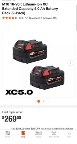 Milwaukee Redlithium XC5.0 Batteries$200Upland, CA