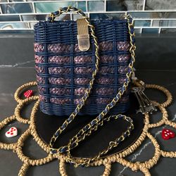 Vintage Blue and purple Wicker Small Boxy Purse Shoulder Cross Body Strap Mesh Clasp$18Virginia Beach, VA