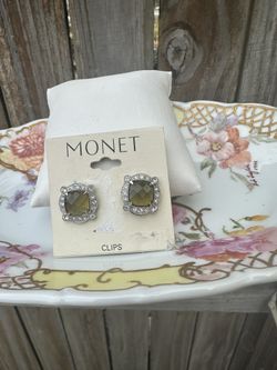 Vintage Monet Topaz Crystal Center Silver-tone Clip On Earrings, New, RARE STOCK$16Virginia Beach, VA