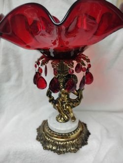 Hollywood Regency Large Compote / Fruit Bowl, Ruby Red Glass, Brass, & Prisms$300Las Vegas, NV
