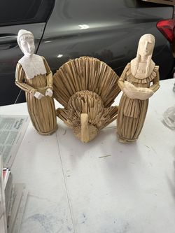 Vintage Cornhusk Carved Wood 12” Man Woman Pilgrim Figures and Turkey$40Los Lunas, NM