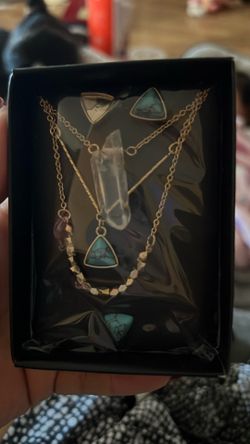 Quartz Amulet Layered Necklace And Earring Set$15Modesto, CA