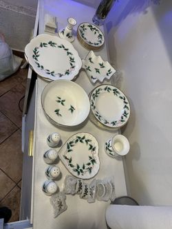 Mikasa Ribbon Holly Bone China Set Japan Holiday Dinnerware Collection $200Los Angeles, CA
