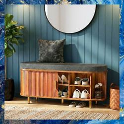 Entry Way Bench 43" With Shoe Storage And Padded Seat And Sliding Doors, New, Unassembled In Box. $120Palmdale, CA