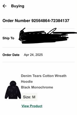 Denim Tear Cotton Wreath Hoodie Black MonoChrome $170Greensboro, NC