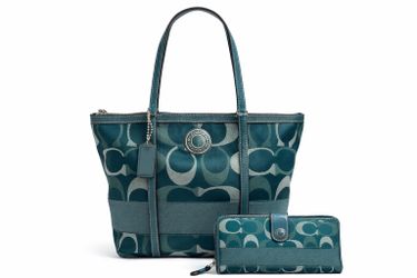 Coach Signature Tote Bag Teal Blue Canvas Leather + Matching Wallet Set$50Las Vegas, NV
