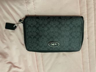 Coach Signature Black Zip Around Wallet Wristlet Leather Card Holder Women$40Las Vegas, NV