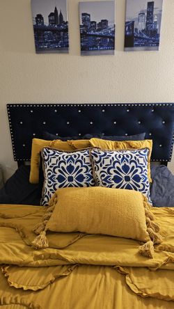 Navy Blue Upholstered Platform Bed$190El Cajon, CA