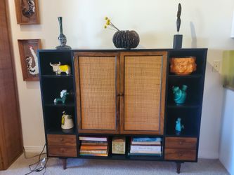 BEAUTIFUL MID-CENTURY MODERN WOOD RATTAN CABINET SIDEBOARSD SHELF$750Playa Del Rey, CA