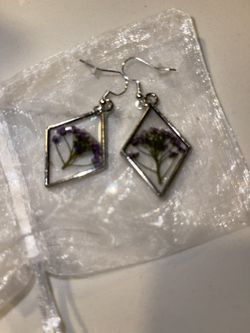 Handmade Real Pressed Flower Resin Earrings – Silver Geometric Dangle$15San Diego, CA