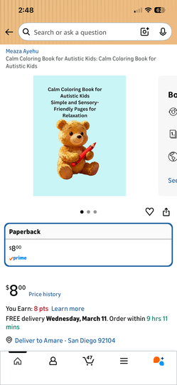 “Calm & Happy – A Sensory Friendly Coloring Book for Autistic Kids”$8San Diego, CA
