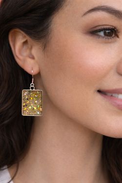 Handmade Glitter Resin Dangle Earrings – Gold Sparkle Triangle Earrings – Unique Handmade Jewelry$12San Diego, CA