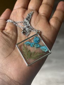 Handmade Real Pressed Flower Necklace – Blue Floral Square Pendant$15San Diego, CA