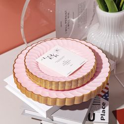60PCS Pink Scalloped Plastic Plates with Gold Rim, Disposable Elegant Plates Include 30pcs Dinner Plate 10.25", 30pcs Dessert Plate 7.5", Perfect for $25Sierra Madre, CA