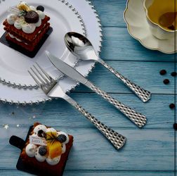 Fancy Disposable Dinnerware Party Set, 15 Dinner Plates 15 Dessert Plates with Silver Bead Rimed, 15 Silver Spoons, 15 Knives, 15 Forks, Plastic$30Sierra Madre, CA