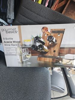 Gourmet Basics 9 Bottle Acacia Wood Wine Rack with Black Wire$20Addison, IL