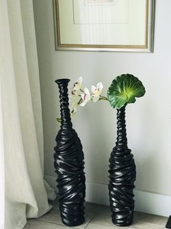 Art Deco Pair Of Pearl Black Floor Vases 36”, 32”$99Boca Raton, FL