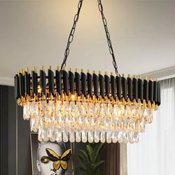 Modern Crystal Chandeliers for Dining Room Black and Gold Chandelier Living Room 8-Light Pendant Light Fixture Oval Contemporary Ceiling Hanging Light$170Avondale, AZ